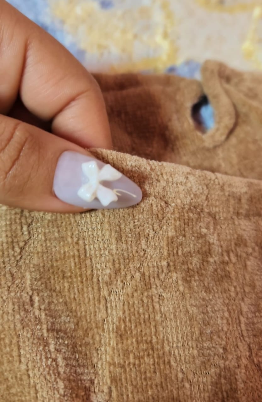 يتكوّن الطقم من فستان واسع يرافقه بلوزة قصيرة بأزرار أنيقة، تضيف لمسة عصرية وشيك